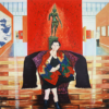 De l’autre côté de la toile, une figure pontificale, que l’on identifie aisément comme Pie XII, est assise sur un trône doré. Vêtu de ses habits cardinalices, il incarne l’autorité religieuse et spirituelle. Cependant, son expression est impassible, presque froide, et son cadre doré contraste violemment avec la blancheur éclatante de la statue située en face. Ce contraste semble souligner une dualité entre la force brute et la puissance symbolique, entre l’héritage de l’antiquité et l’autorité religieuse moderne.