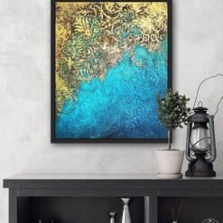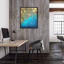 Technique : Acrylique, rouille oxydée, enduits, pochoirs, feuilles de métal dorées…