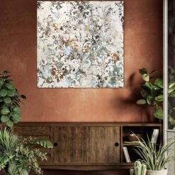Technique : Acrylique, enduits, pochoirs, patines, feuilles dorées, craquelures, chalky paint.