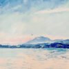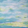 Le ciel, peigné de nuages légers, semble se fondre avec l’eau en dessous, créant une continuité entre les éléments. Cette fusion délicate entre ciel et lac se traduit par des coups de pinceau fluides et expressifs, qui donnent une impression de mouvement léger, presque éthéré. L’œuvre suggère un moment fugace à la tombée du jour, où la lumière se diffuse, accentuant la beauté éphémère du paysage.