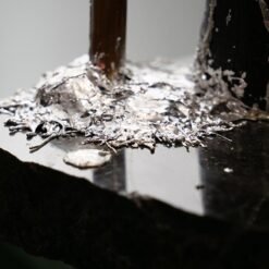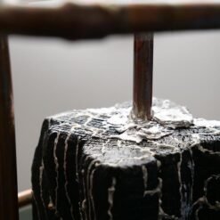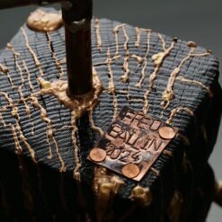 Technique : Pin brulé et stabilisé, Peinture à la seringue de vernis acrylique. Etain fondu, cuivre de plomberie