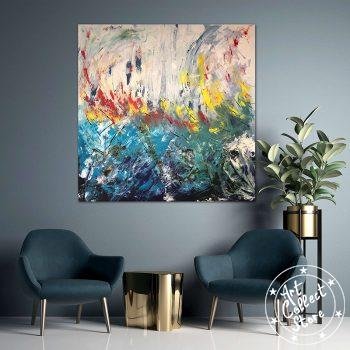Technique : Acrylique travaillée aux couteaux. Toile polycoton montée sur châssis bois.