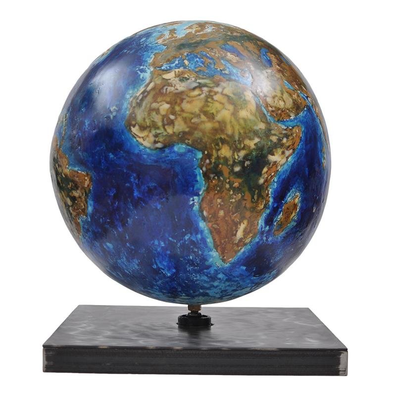 Technique : Globe terrestre en résine et fibre de verre avec pigments et poussière de bois. Fais entièrement à la main