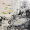 Kloo : L’énergie part du noyau central jaune. L’effet tourbillon donne la notion d’entrainement renforcée par l’écume blanche et les traces rouge sombre. Le tableau est lumineux et il raconte bien l’impulsion première, la force créatrice. Il est vernis et la tranche est peinte en noir pour un rendu parfait si on ne souhaite pas de cadre.