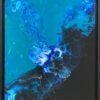Dans la toile envoûtante intitulée « Animal Glacial », des nuances du blanc au bleu créent un mouvement circulaire, évoquant deux demi-cercles mystérieux. Sur un fond noir, cette composition glaciale invite à explorer une symphonie visuelle où le froid et la forme s’entrelacent dans une danse hypnotique.