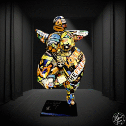 Siberil Rey : Statue en bois sculptée à la main puis, habillée d’une multitude de papiers coupés à façon