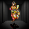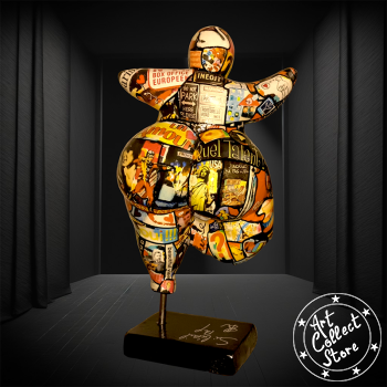 Siberil Rey : Statue en bois sculptée à la main puis, habillée d’une multitude de papiers coupés à façon