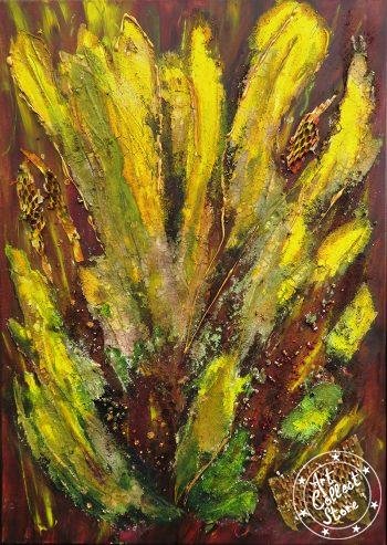 Octobre doré rend hommage à la splendeur colorée de l’automne. Si vous marchez attentivement à travers le monde automnal, vous êtes entouré d’une mer de couleurs qui réchauffe le cœur, malgré les jours plus froids. La palette de couleurs va des nuances fanées de vert au jaune, orange, rouge et un brun chaud. Toute cette richesse de couleurs est capturée dans l’image et peut réchauffer les journées d’hiver moroses et froides. Dans mon travail, vous pouvez ressentir l’énergie vibrante de l’automne exprimée à travers l’utilisation audacieuse de la peinture acrylique. Je cherche toujours des moyens de capturer la pure puissance émotionnelle de la nature. Cette peinture capture le scintillement des feuilles dorées et leur danse affirmant la vie dans le vent. Elle apportera une atmosphère de chaleur et de beauté dynamique à n’importe quelle maison.